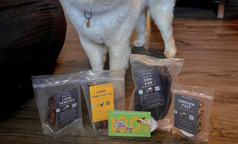 The Treat & Chew box contains three bags of single-ingredient chews and 3 bags of single-ingredient treats. The air-dried treats are made of different organ meats, muscle meats, and seafoods each month. For example, flavors of the month have included pork liver, duck wing, and beef blackstrap.